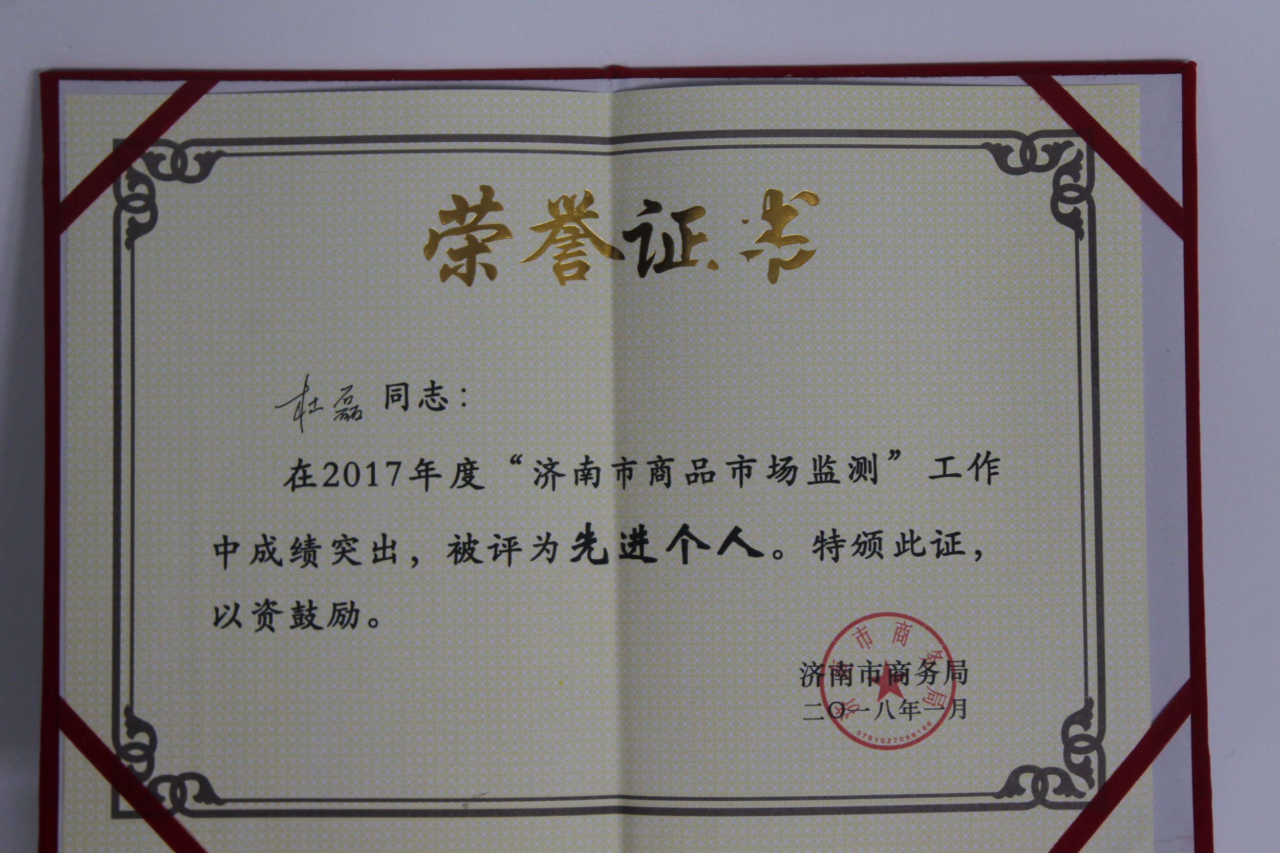 濟南市尚商品市場監測先進個人