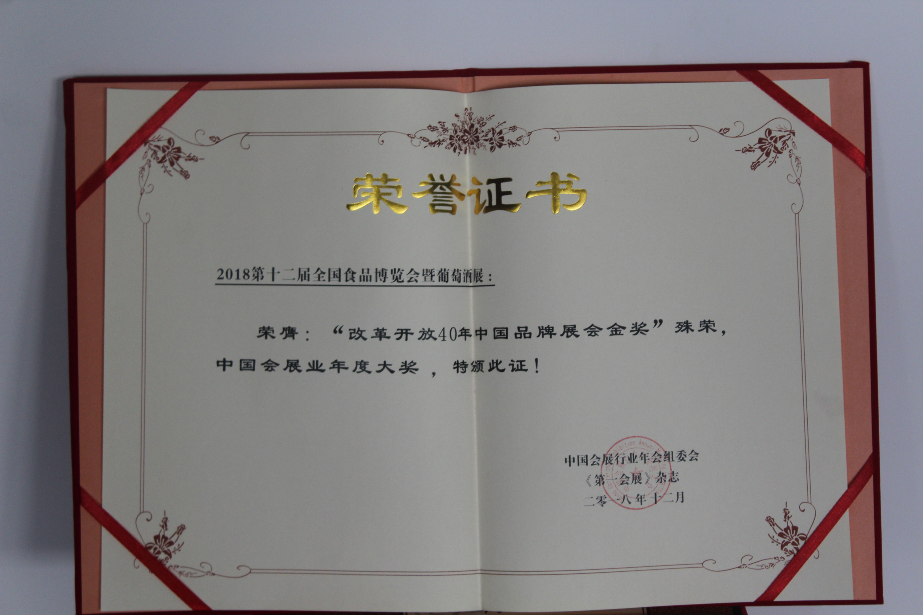 改革開放40年中國品牌展會金獎