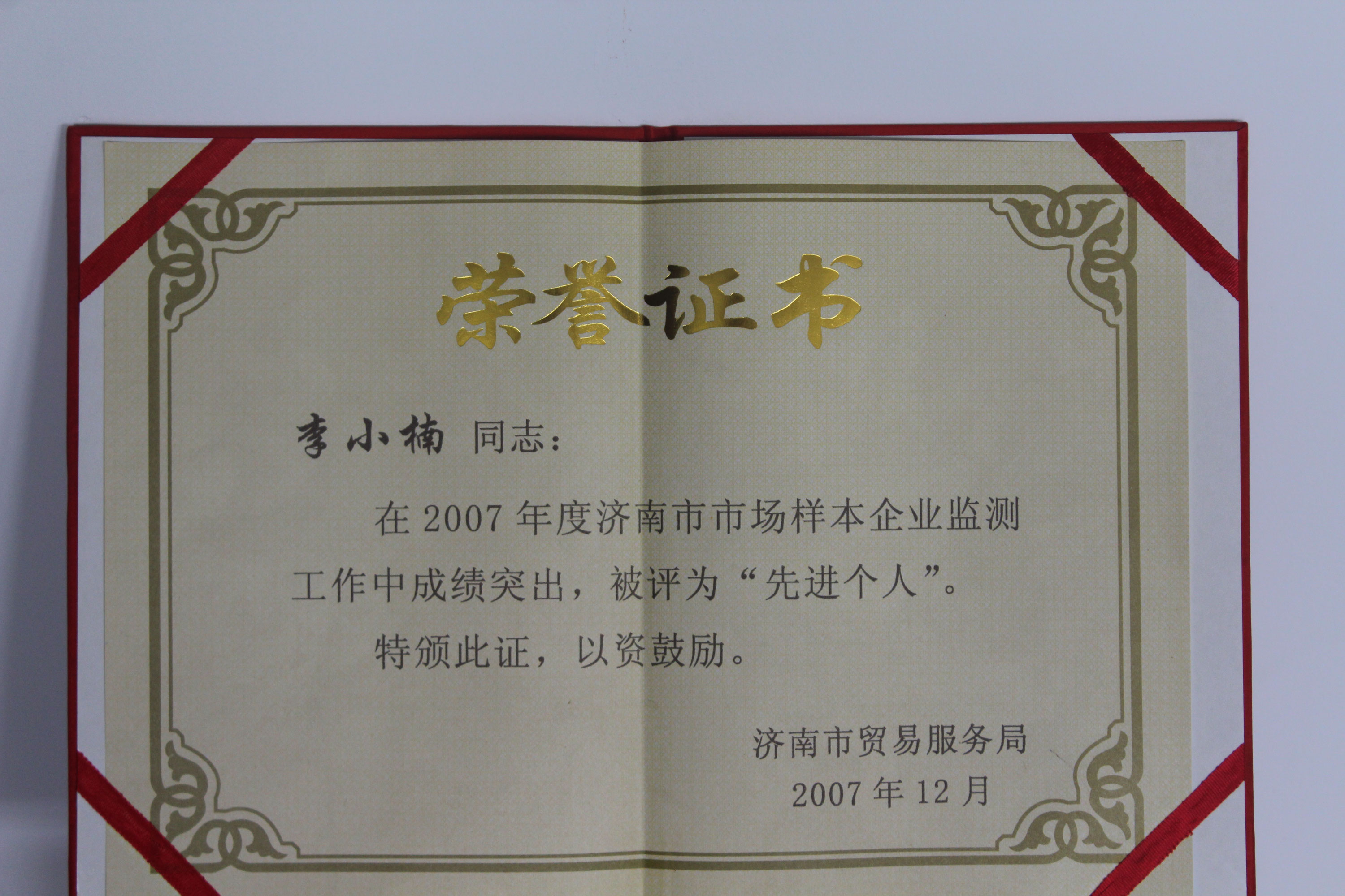 濟南市商品市場監測工作先進個人