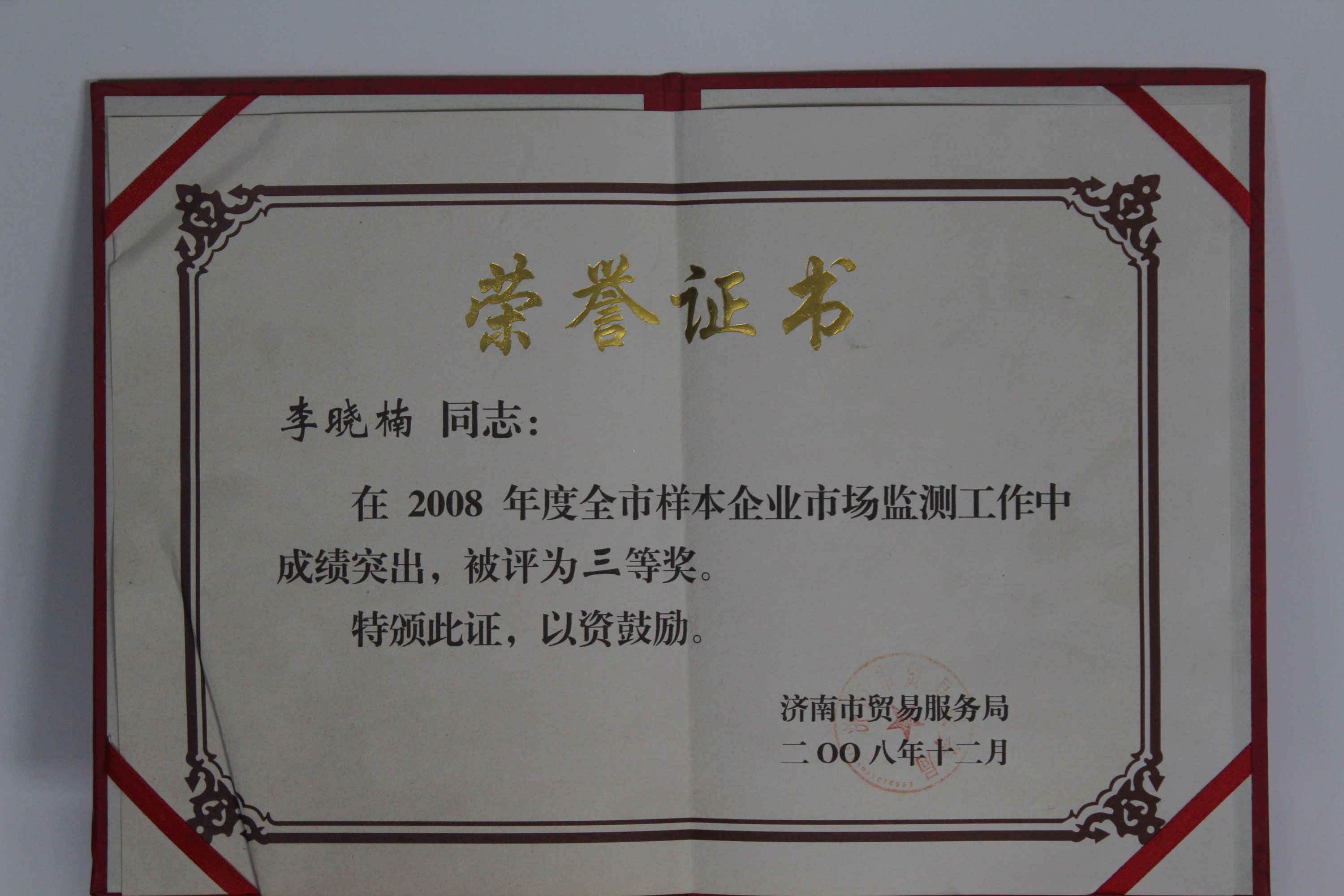 2008全市樣本企業市場監測工作三等獎