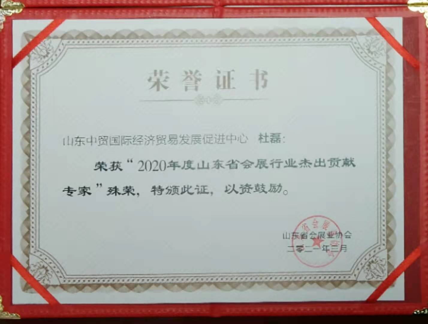 2020年度山東省會展行業杰出貢獻專家