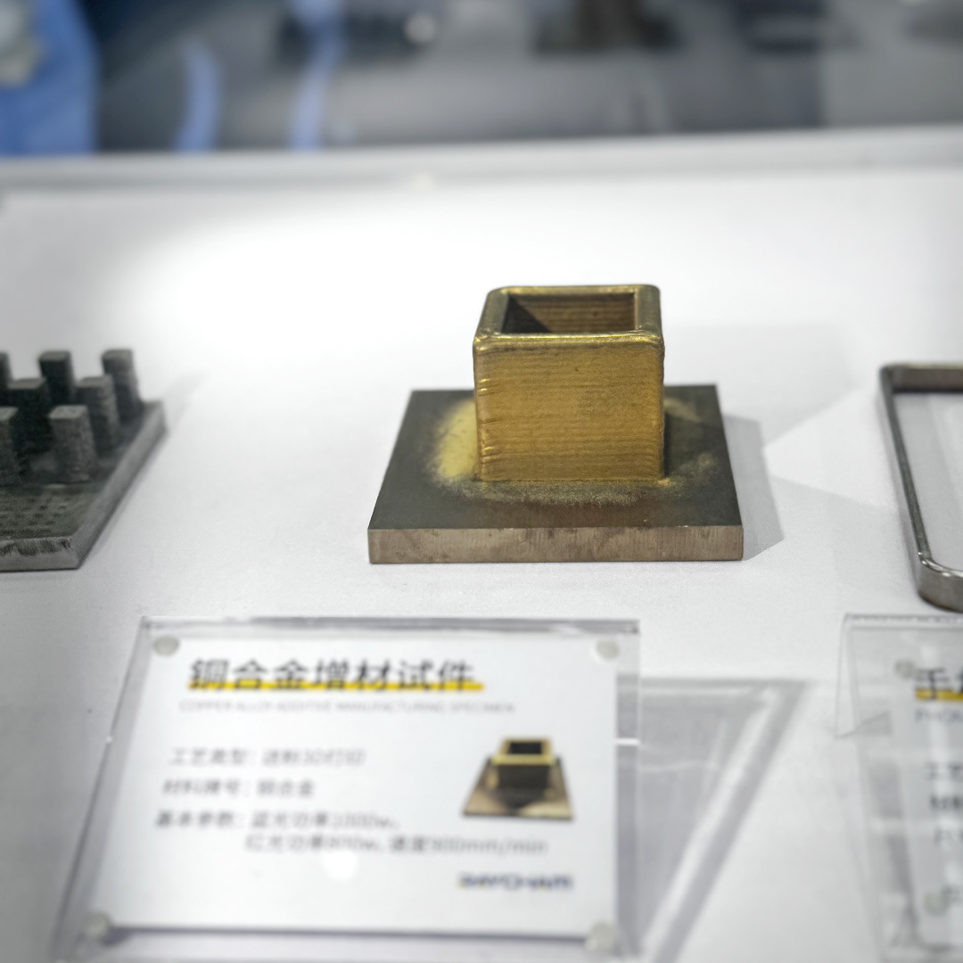 在技術(shù)成果展示區(qū),中科煜宸帶來的增減材一體化復(fù)合制造復(fù)雜形狀構(gòu)件、多材料3D打印構(gòu)件及3C半導(dǎo)體等行業(yè)脆硬性材料水導(dǎo)激光加工等應(yīng)用案例,直觀展現(xiàn)了金屬增材制造技術(shù)和水導(dǎo)激光加工技術(shù)在不同行業(yè)的實踐價值。