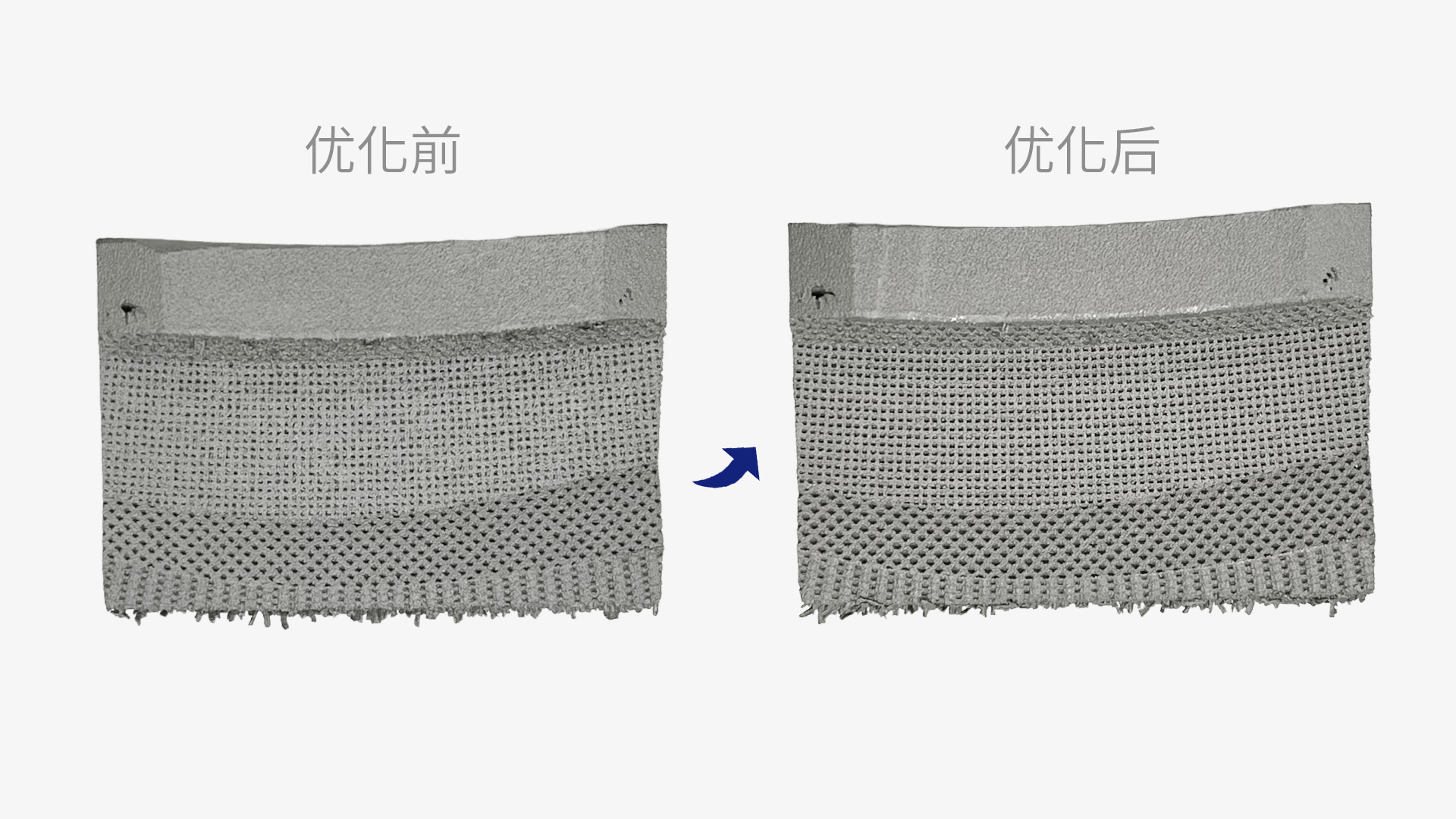 RM720×12設(shè)備搭載12組激光器,設(shè)備單次打印可同時成形至少兩雙鞋模,如下采用0.03mm單層厚同時打印的一雙中框+一雙底模用時僅11h52min,成形效率可達450g/h(10.8kg/24h),較傳統(tǒng)四激光設(shè)備提效接近2.5倍,且打印后外表面無拼接痕跡,花紋清晰。